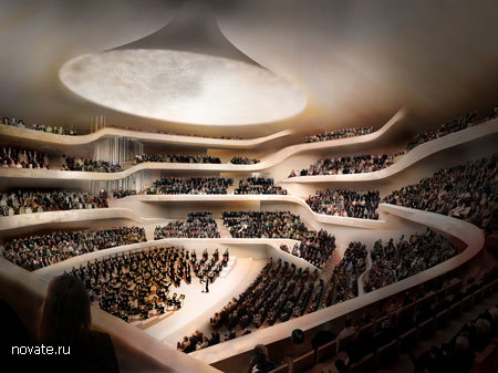Новый комплекс объединит в своих стенах три концертных зала, отель, сорок семь квартир и общественные площади, из окон которых открывается прекрасный панорамный вид на Гамбург и Эльбу.