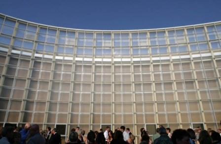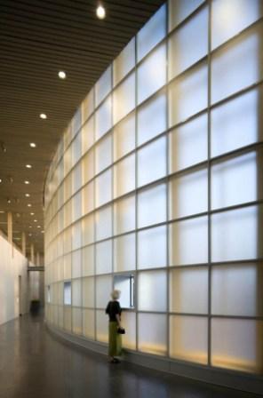 * Стеклянная стена «Ловца света» блестит как желтый агат, добываемый неподалеку на побережье; смягчает свет как облака, проплывающие над городом; создает ощущение нереальности происходящего, как туман или утренняя дымка, а ночью напоминает сигнальный огонь.