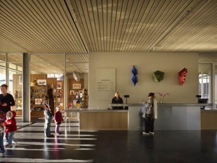 Так как в новом здании разместились одновременно детский музей и музей искусств, оно рассчитано на посетителей всех возрастов. Чем-то это напоминает гостиную комнату, только общественную.