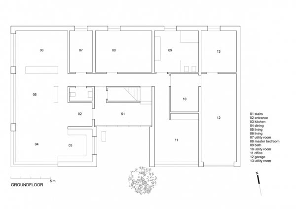 В качестве основного материала для строительства фасадов был выбран изготовленный вручную кирпич. Его использование в сочетании с большими оконными проемами придало нестандартный вид зданию, невзирая на его заурядные кубические формы.