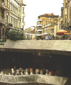 …Так что “нулевой цикл” перестает быть нулевым, и не поймешь, где высь смыкается с глубью, как низь устремляется ввысь (фото 11, Пловдив). Фантасмагория колодца, в который провалилась сказочная Алиса и очутилась в Стране Чудес. Пока она летела, спокойно рассматривала стены колодца – сплошь шкафы и шкафчики, полочки и полки. С одной из них успела снять банку с апельсиновым вареньем… Чем не метафорический прообраз современных супермаркетовколодцев?