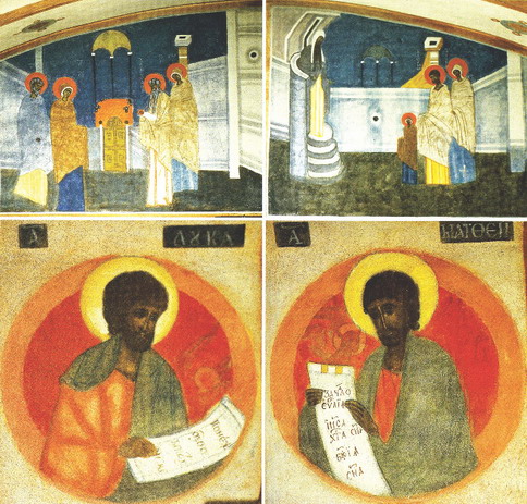 Смерть Христа на Голгофе через ее символ – крест – объединяет композицию иконостаса с росписью сводов алтаря. Облик креста соотнесен с образцами итальянской живописи XIII в., следовательно, с периодом расхождения византийской и латинской традиций. Посредством этого соотнесения как бы делается попытка их соединения. Иконостас храма почти ажурный, очень пространственный, прозрачный и потому органично связан с пресбитерием и алтарем. Большое, низко подвешенное, круглой формы паникадило фиксирует центральность пространства перед иконостасом – как бы с целью заменить традиционно размещенный над местом совершения Евхаристии купол с Пантократором. Кроме того, аппликационность икон на сводах, словно разбивающая их ритм и структурную упорядоченность, усиливает эту сконцентрированность.