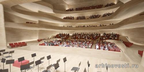 В здании будет концертный зал на 1600 мест, театральный зал на 400 мест, образовательный центр, репетиционные залы и галереи.