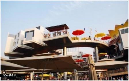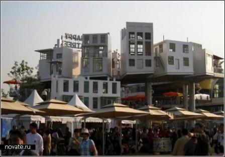 Павильон называется «Счастливая Улица» (Happy Street). Он, действительно, представляет собой улицу, спиралевидно закрученную, на которой находится двадцать шесть небольших домиков с различными функциями.