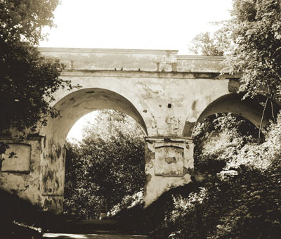 Позднее с развитием каменного зодчества в Гродно появляется уже 3-пролетный мост арочной конструкции (рис. 6). Такие мосты прежде всего были частью дворцовозамковых комплексов (Гродно, Несвиж). В “шляхетский период” Речи Посполитой небольшие каменные мостики становились украшением парковоусадебных ансамблей. Мостовая архитектура с XVIII в. приобретает декоративные черты под влиянием стиля барокко. Характерны рустовка опор, введение пилястр, тяг, карнизов, а также картушей на месте замковых камней в арках.