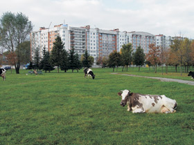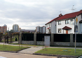 Короче‚ идет борьба — кто кого. То‚ кажется‚ Город держит верх над ветхостью‚ то Деревня наступает‚ позаимствовав у Города его достоинства-аргументы‚ не утрачивая при этом и свои собственные. Это заметно и на дальних подступах (фото 12)‚ и в “ближнем бою” (фото13). Когда новая Деревня сплачивается‚ Город не кажется столь угрожающим. Борьба‚ как видим‚ примиримая. На пользу всем она и ведет одновременно и к Селу, и к Городу. Вернее‚ к Человеку‚ Архитектуре‚ возвращающей нам Небо и Землю. И зори здесь тихие.