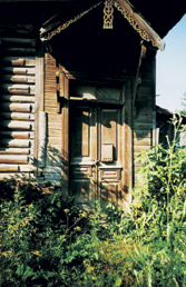 Здесь же и свой сад. Туда изба-хата подвигалась различными пристенками и прирубками. Туда неторопливо проникало через сени скрипучее‚ как бы в голос привечающее крыльцо. Также резное‚ словно говорящее: “Добро пожаловать!” или “Скатертью дорога!”. Тут и теплая деревянная дверь со щепкой в засове. Можно сказать‚ не закрывающаяся: не от кого. Так что висячий замок означал‚ что дом опустел надолго‚ возможно‚ навсегда (фото 3).